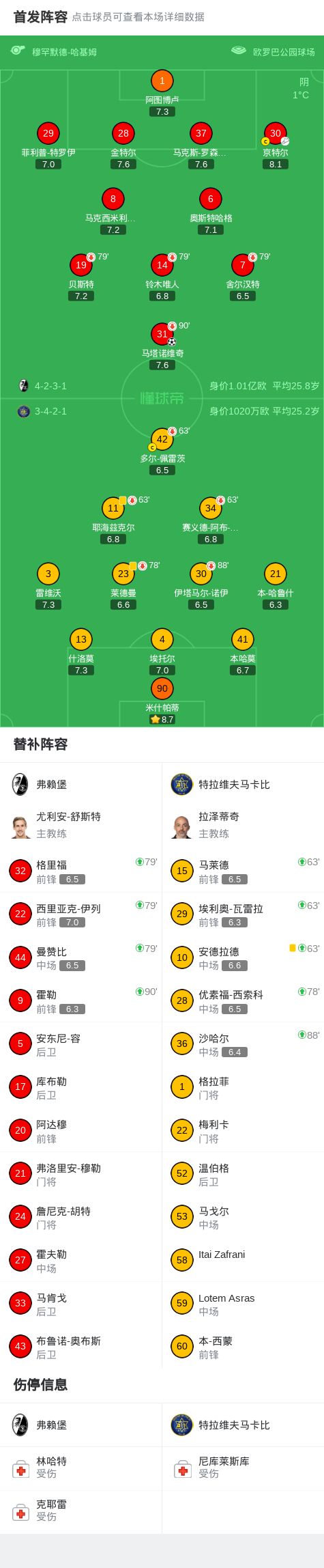 弗赖堡1-0特拉维夫马卡比,马塔诺维奇绝杀